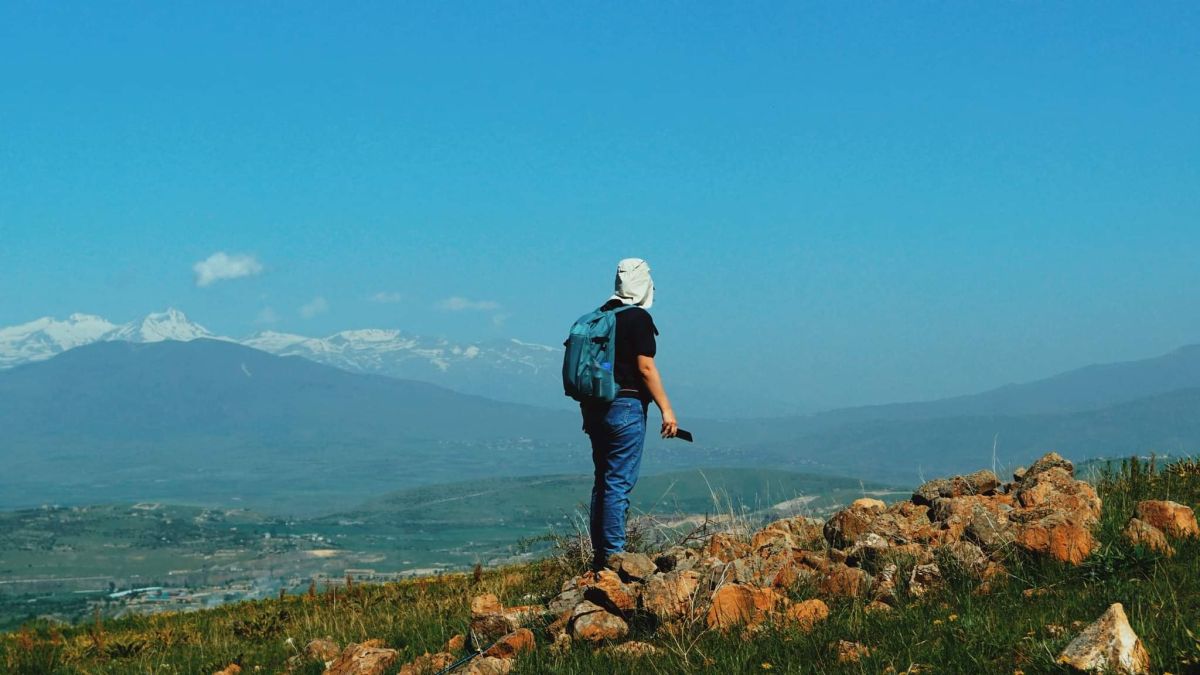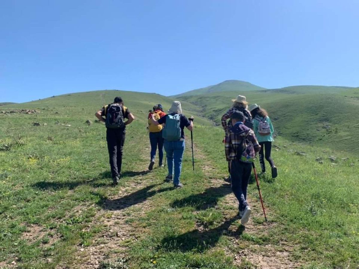 The road to the top of the mountain passes through meadows and ancient sites with a beautiful view of the surrounding magnificent mountains from Hatis.
