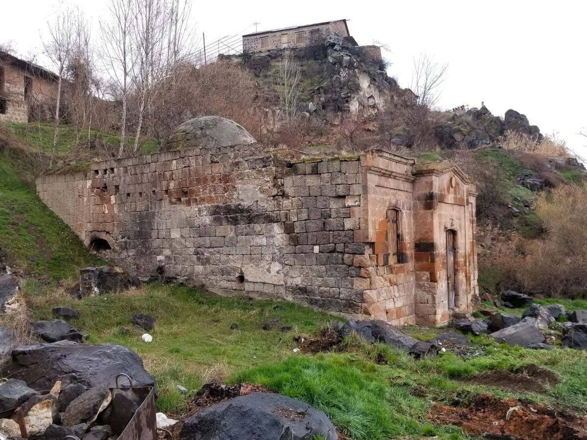 Աշտարակի ձորից դեպի Կարմրավոր եկեղեցի բարձրացող ճանապարհի աջ կողմում՝ ապառաժի տակ մի հետաքրքիր շինություն կա։ Դա 20-րդ դարի սկզբում կառուցված հանրային բաղնիքի շենքն է։